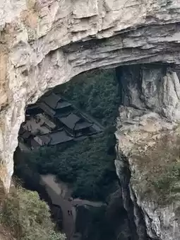 Tianlong Bridge: Beneath the cenote lies the Tianfu Official Posthouse, a replica of the Tang Dynasty architecture, located in the cenote. It became famous as a filming location for the film "Curse of the Golden Flower."