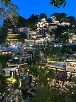 Hongyadong, or Hongya Cave, is a striking complex of 11-story stilted buildings in Chongqing, China, perched on a cliffside along the Jialing River. It is one of the city's most popular attractions, famous for its unique architecture, vibrant nightlife, and resemblance to the bathhouse from the animated film Spirited Away. The complex is built in the traditional Bayu architectural style, a type of stilted house common in the mountainous terrain of southwestern China.