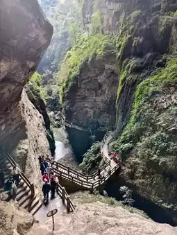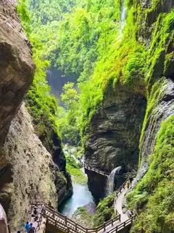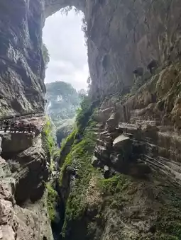 Located in Wulong District, Chongqing, this natural scenic area is a typical karst canyon, renowned for its deep, winding terrain, cascading waterfalls, and pristine vegetation.