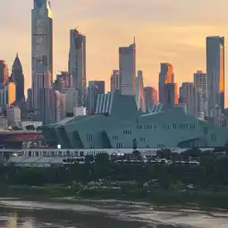 - A panoramic view encompassing the Yangtze River on the left, Jialing River on the right, and landmarks like Hongyadong, Raffles City, and the Grand Theater.