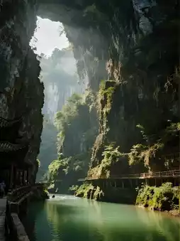 👉 Longshui Gorge Fissure: A karst landscape formed by mountain-building movements tens of millions of years ago, the valley is 200-500 meters deep, divided into three sections for touring, cliffs with waterfalls, kids happily chasing the splashes~