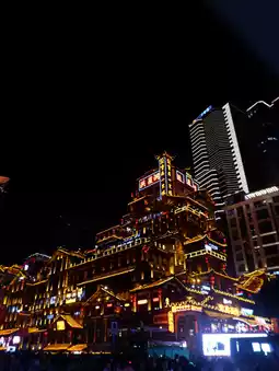 Evening walk to [Hongya Cave], avoid the 6:30 PM crowd peak, enter at 7:00 PM just right