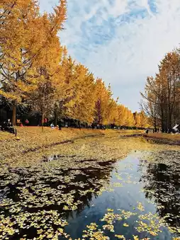 1. There is a small river next to the ginkgo forest, you can take pictures of the bend of the river and its reflection.