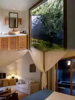 The hotel is located on the hillside of Jiezi Ancient Town on the Qingcheng Mountain ring road, near the Guangyan Zen Monastery with a long history. The hotel was once a Sichuan-style old house that has stood for two centuries, and now it has been transformed into a unique forest hot spring hotel nestled in the mountains. Surrounded by lush forests, the hot springs rise amidst nature's embrace, allowing one to truly feel the healing power of nature.