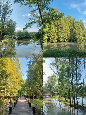 ✔️ Wetland park, with many plants, the park is full of water pine trees, and there is a large rice field nearby, suitable for taking children for a walk