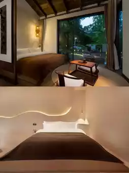 🌈 We booked Kun Ling Private Soup View Mountain Queen Room, an area of 100 square meters, with a private hot spring pool bathing.
