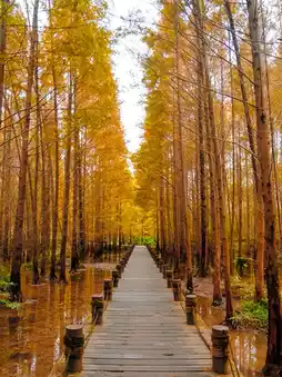 ✔️ The dawn redwood forest is hidden in the deepest part of the park, and after passing through a long boardwalk, the mysterious dawn redwood forest is right in front of you