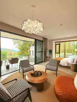 After arriving at the store, the young lady greeted us warmly and helped us carry our things. After checking in, he patiently introduced the various facilities in the room to us. The room we chose this time is relatively large and the decoration is very grand. The floor-to-ceiling windows next to the bed make you feel as if you are in the beautiful scenery of Norway. There is a super large balcony outside (with a large private hot spring pool). No one can refuse to take a hot spring bath in the cold winter♨️. The hot spring had been cleaned and disinfected before we arrived.