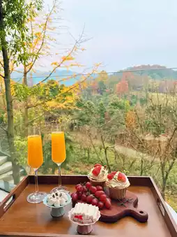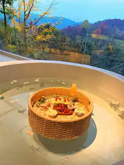 After dinner, I took a walk in the B&B and then went back to the room to soak in the hot springs. All my fatigue was gone. There is also a small lake in the B&B, where swans and geese are raised, which is super cute. There are also glass plank roads and cabins, where you can sit and enjoy the mountain view during afternoon tea, which is enough to while away the whole day.