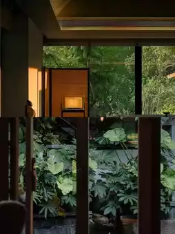 The floor-to-ceiling windows on three sides are surrounded by big trees 🌲