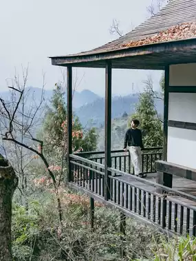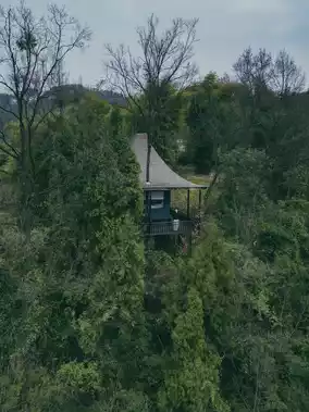 There is a tree house on the cliff built in Song Dynasty style.