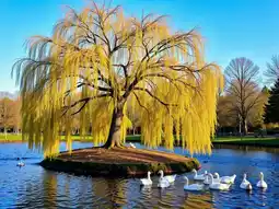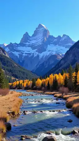 Yellow ginkgo, red maple leaves, and green cypress blend together