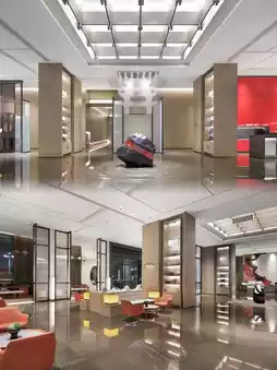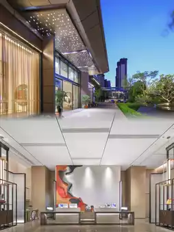 The hotel is located in the bustling area of the city, where you can view the undulating mountains and lean on the brightly lit city. Wanxianghui is just downstairs, the stadium is only a 5-minute away, and Taiping Ancient Town is a 15-minute journey. Every table, chair, window, and view is a texture presented after meticulous carving. The Luoyue culture in the lobby is inherited, and the regional culture is fully appreciated for its profoundness. A city oasis surrounded by green trees, with water features that brighten the scenery. A leisurely stroll relaxes both body and mind.