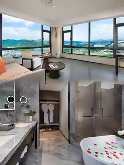 As a rising new tourist city, Chongzuo has gained more and more attention. Whether it's the landscape of the border city or the long-inherited Luoyue culture, it's all worth deeply experiencing. When you come here, you must experience this hotel that caters to both business and leisure with high quality. The hotel offers a time where culture and landscape of the border city intertwine, where liveliness and tranquility switch at will, time settles, and the experience is limitless.