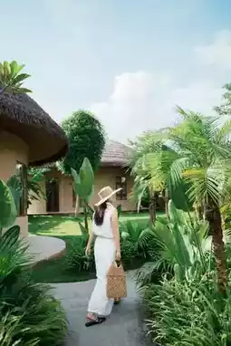 Upon entering, it feels like stepping into a tropical rainforest with mushroom-shaped houses. As my sister described, every room resembles a mushroom. Most room types come with outdoor pools, varying in size, and some include afternoon tea. The hotel is divided into four zones, each named after a brand, and every brand zone features a large pool. Next to Xikong is a grassy field, while across from it lies a river and mountains, making it an ideal spot to watch the sunset.