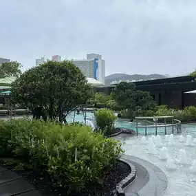 The paths in Shiosai Park are easy to walk, and if you want to get closer to the water, there’s a gentle sandy beach area with stairs leading down to the shore. However, April might still be a bit chilly—I only saw one person collecting seaweed on the beach.