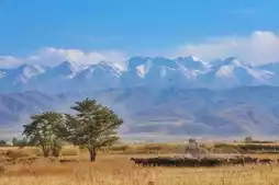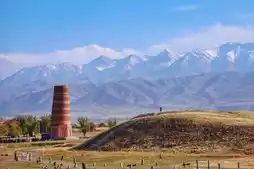 More worth seeing than Suyab City is Burana Tower, not far away, located 20 kilometers south of Togmak. It is said that Genghis Khan kept it because of its high height. The snow-capped mountains around the tower are endless, and on the boundless grassland under the snow-capped mountains, children are riding horses and herding cattle and sheep from time to time, and the shepherd dogs are accompanying them, forming a beautiful picture.