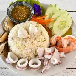 Delicious food, fresh seafood, squid, shrimp, crispy and bouncy meat, firm crab meat