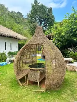 💯 The menu here offers a wide variety of options, including meticulously prepared Thai and European dishes. There are also a range of coffee and other beverages to choose from. One of the highlights of this place is its beautiful Balinese-style decor, featuring numerous photo-worthy spots. Whether it's the seating area by the water, the long wooden bridge, or the garden filled with various plants, visiting here is not just about dining but also about relaxing, taking photos, and recharging yourself.