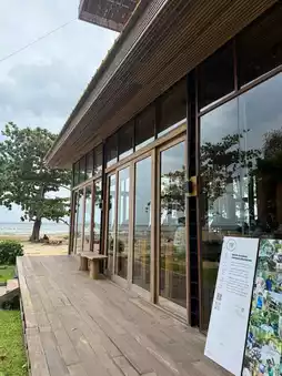 This cafe offers a unique atmosphere, unlike any other. With its treehouse-style setting right by the sea, the view is lush and shady. It offers stylish food and drinks, and is perfect for a relaxing getaway or a day off from the hustle and bustle.