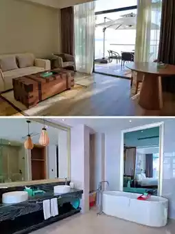 The hotel is built on an independent island, surrounded by water on all sides and connected by a floating bridge. Vehicles can only be parked in the parking lot outside and then picked up by the hotel's electric car.
