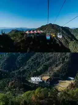 Shanghai Horse Adventure Park, the scream starts from the No. 1 cable car, the colorful cable car carries people to the depths of the mountain top, and all you can see is beautiful scenery.