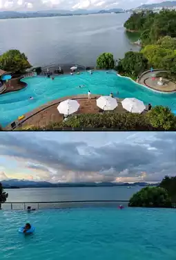 The lobby bar of the hotel opens to the beautiful scenery of Qiandao Lake, which is almost the same as the scenery I have seen on the viewing platform. The pool has three outdoor ones and one indoor one. The view of the infinity pool is connected with the scenery of Qiandao Lake. We deliberately went swimming in the morning, dusk, and evening, and we could appreciate different beautiful scenery at each time period.