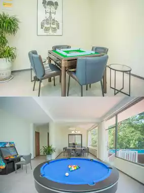 The villa also has an independent 💢 play area, game consoles 🤹🏻♀️, billiards, mahjong 🎲, KTV box 🎤, private kitchen, private swimming pool 🏊, wow, it's really thoughtful 😍, a one-stop place for eating, drinking and having fun 🤩