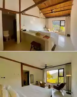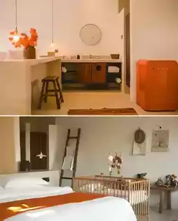 The original building complex is a group of relocated residences, old granaries and oil mills. It used to be a place for milling rice and changing grains. The chairs in the villa living room are all different, not uniform, most of them are collected from Morocco, Anatolia, Pakistan, Mali and other places or from local residents' homes, making the space filled with a charming retro atmosphere. The flowers and trees in the courtyard are also preserved, witnessing the changes of history. The original shipyard, oil mill, and the residents' collective kitchen have been transformed into the current four-room courtyard villa 'Oil Mill',