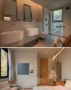 The variety of room types is rich and diverse, ranging from courtyard rooms to loft lake-view rooms, each with its unique scenery and layout. The MUJI-style minimalist elegance, from the walls to the bedding, gently envelops each guest. Especially the lake-view rooms with their expansive floor-to-ceiling windows serve as the perfect vantage point to admire Qiandao Lake. The scattered islands and the deep blue waters of the lake silently extend an invitation for you to lay down your burdens and immerse yourself in this tranquil sanctuary.