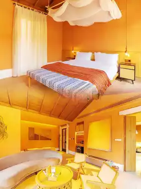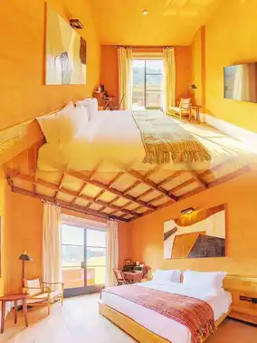 The homestay consists of a two-story building and an independent villa, offering a total of 9 well-equipped guest rooms. The first floor has 4 pool rooms where you can jump directly into the pool to enjoy a sunbath; the second floor has 4 balcony rooms overlooking the continuous rapeseed fields. The villa 'Under the Mountain' also provides a private living room, courtyard, and pool, ensuring a private stay experience. The rooms are equipped with Marshall speakers, ESPRESSO capsule coffee machines, and high-end bath products, both luxurious and natural.