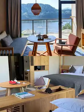 ✨The hotel has a total of 139 rooms of various styles, each room's design is unique, but all rooms adhere to the consistent Chinese architectural style, with wooden furniture, celadon tea sets, bamboo woven round chandeliers, and ink painting decorations, all embellished with simple and ancient Chinese elements. Looking out the window, there are different sceneries in each of the four seasons, all within sight!