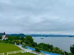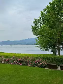 What's even more amazing is that there is a small garden behind the building we stayed in, 🪵 brick walls, 🍀 dense grapevines, 🌤 sunlight shimmering through the grapevines, 🌊 the distant blue lake surface, it's too beautiful!🥺