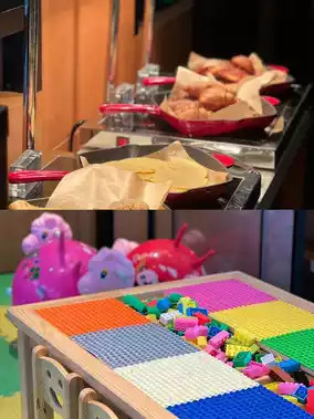 The children's play area is near the parking lot and is relatively new, suitable for family travelers.