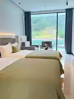 The homestay is located in Shilin Town, Qiandao Lake, at the junction of Jiande Xin'anjiang Hydropower Station, Shouchang Town, Hangtou Town, and Lijia Town. It is built by the mountains and water, with the terrace or windows of the guest rooms facing the boundless blue waves. At sunset, the blood-red sunset dyes the clouds on the horizon brilliantly; when night falls, the stars and the fishing lights on the lake reflect each other.
