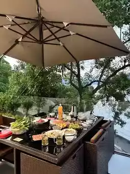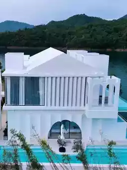 The public area facilities of the homestay offer a rich and diverse experience. The Santorini-style exterior, rich Mediterranean style, has loft private hot spring pools🛋, lake view restaurants🍽, infinity pools🏊, children's trampolines♻️, swimming pools🏊🏻, reception halls🕴, etc. The fish🐟 from Qiandao Lake is freshly caught and cooked🧑🍳, extremely delicious~ In the afterglow of the sunset, bringing you a unique dining experience!