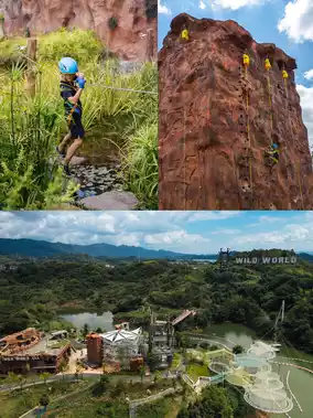 🧗Wild World No. 7 Discovery Park also has many outdoor challenge projects, including via ferrata, rock climbing, ropes, zip lines, caving, suspended trampolines, high-altitude matrices, and go-kart venues. The super-long track allows children to experience speed and passion 🏎️ There are even helicopters and paragliders waiting for you and your child to challenge 🪂