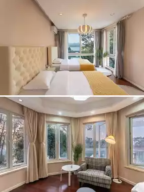This villa is absolutely stunning😍. Open the window and you're greeted by the breathtaking scenery of Qiandao Lake, like stepping into a landscape painting.