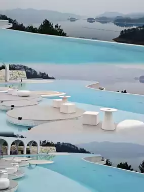 ✔️Cliff hotel built by the lake🏨180-degree infinity pool🏊Open-air hot spring♨️Overlooking the beautiful scenery of Qiandao Lake👀Near the mountains and rivers, far away from the hustle and bustle, strong privacy㊙️