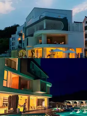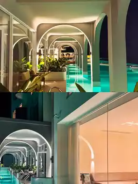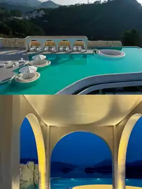 ✔️Cliffside infinity pool - Perfect for photos day and night. The blue hour during sunset is especially stunning, and the pool's lit-up ambiance at night creates a magical atmosphere.