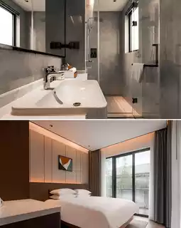 Inspired by "returning to nature," the hotel cleverly uses natural stone and wood to integrate the elegance of Jiangnan with modern environmental protection concepts. Each villa is enclosed by an independent courtyard, and floor-to-ceiling windows bring the seasonal scenery indoors. What's even more exciting is that, as an Asian Games service hotel, it continues the "green and low-carbon" gene. From the technologically advanced microfiber bedding to the plant-extracted bath products, the details reveal respect for ecology.