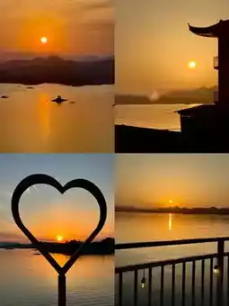 Head to "Tianyu Mountain Viewing Platform." You can hike up the trail or take the elevator to the top (recommended in the evening) to overlook the panoramic view of Qiandao Lake, capturing the magnificent scene of "lake bays connected, islands scattered like chess pieces" (free admission, elevator fee about 30 RMB).