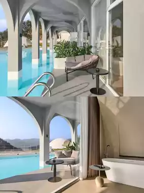 The glass-walled "Yuyan" by the cliff frames the lake into a dynamic oil painting outside your window💫