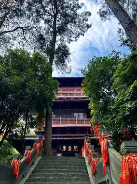 From the entrance of Menggu Tang Cultural Park, climb the stone steps to reach Kuixing Pavilion at the mountaintop ⛰️. It’s a perfect spot for a panoramic view of the islands, scattered like stars, and the interlacing bays, with the lake and mountains stretching as far as the eye can see.