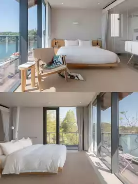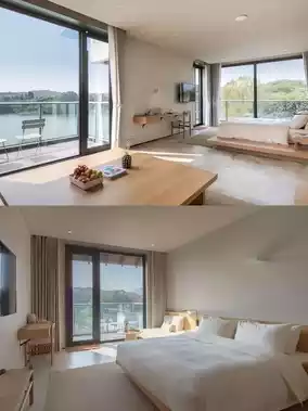 💯 Top Recommendation: Their Lakeview Luxury Suite is a must! Spacious and bright, the suite is elegantly laid out. The moment you step in, the floor-to-ceiling window spanning an entire wall captures your attention, framing the breathtaking view of Qiandao Lake—its waters glittering gold under the sunlight, with distant islands dotting the horizon like a fairyland.