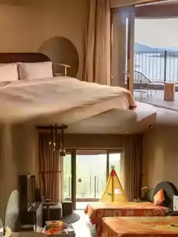 Tucked away amidst misty islets, it boasts exclusive access to 9 pristine natural islands—so luxurious! Crossing the 100-meter suspension bridge onto the islands feels like stepping into a fairy tale. The islands feature farms, orchards, and a petting zoo, with fragrant fruits and adorable animals. Stroll along the kilometer-long walking trails through the woods, occasionally spotting tiny insects hidden in the grass, as if revisiting childhood. Stone paths connect the islands, offering breathtaking lake views at every turn.