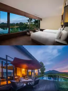 Private villa sanctuaries: The Baqinxuan lake-view villas start at a minimum of 80㎡, wrapped in natural wood and rattan materials for a tranquil space. Window-side daybeds and private terraces let the morning mist and starlight of Qiandao Lake become your exclusive backdrop.