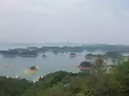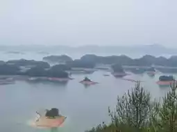 The cable car on Meifeng Island slowly ascends, flanked by varying shades of green. When the viewing platform suddenly appears, everyone holds their breath—over 300 islands scattered like chess pieces on a jade plate, large islands floating like green snails on the water, small islands like ink dots. The lake surface is divided into waterways of different widths, and the white trails left by boats resemble brushstrokes casually swept by a painter. A visitor holding a camera exclaims, “This isn’t a lake at all, it’s clearly the Jade Pool in the sky!”