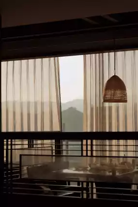 Passing through the lobby, amidst the mountain and water scenery, an inward-facing Oriental courtyard seems to open up another side of Qiandao Lake for me.