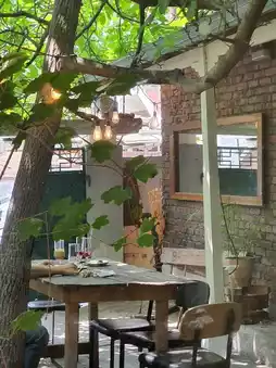 The small yard was lush and green, with a gentle breeze. The interior, with its vintage furniture, was also charming.